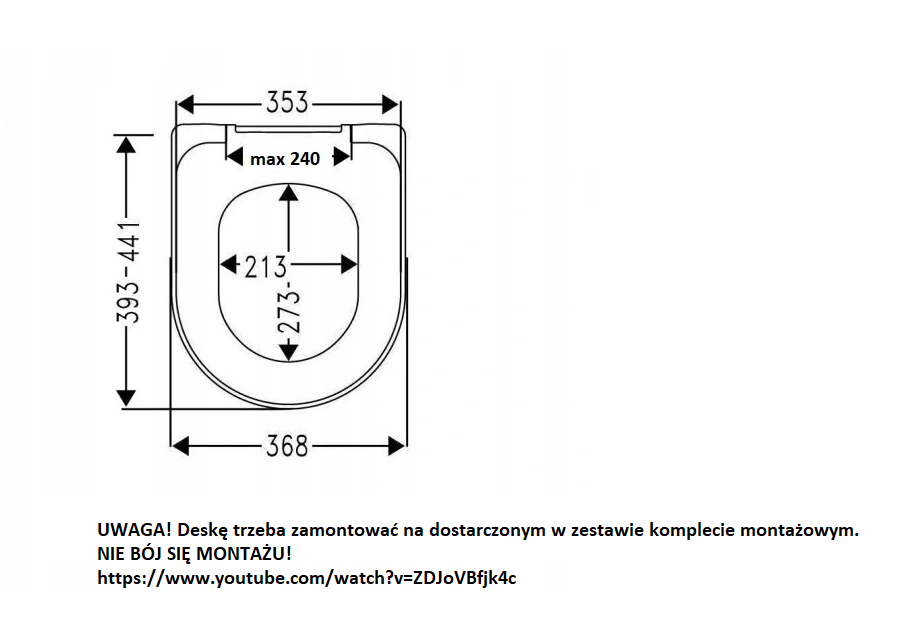 DESKA PASUJE do ceramiki , TYLKO JEŚLI ZOSTANIE ZAMOCOWANA NA DOŁĄCZONYM KOMPLECIE MONTAŻOWYM.