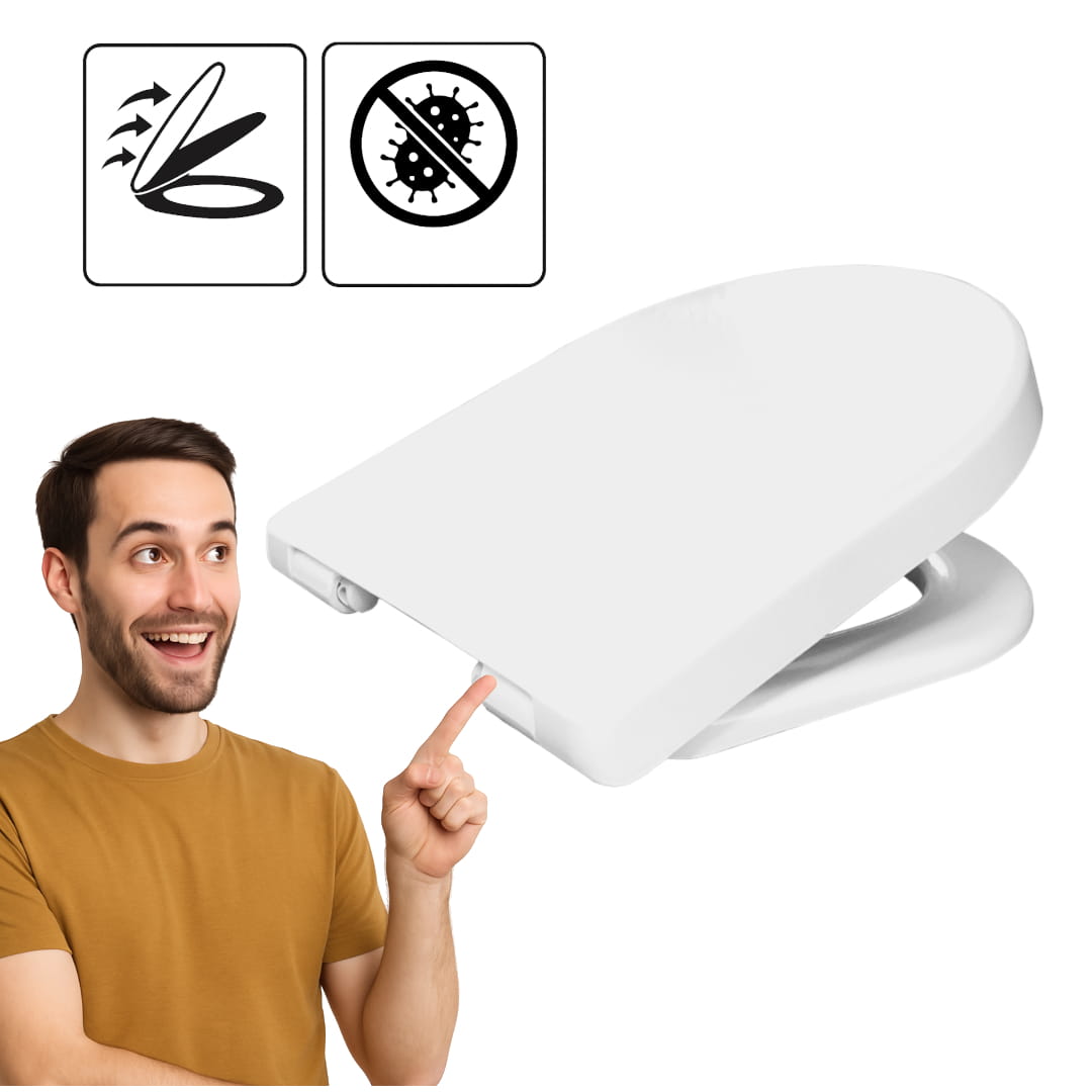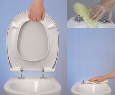 W komplecie zawarte są zawiasy z funkcją wolnoopadającą i łatwego wypinania. Jest to rozwiązanie idealne dla każdego. Funkcja wolnego opadania minimalizuje ryzyko uszkodzeń ceramiki które mogłyby powstać przy gwałtownym uderzeniu, jest również dużo bezpieczniejszym rozwiązaniem niż tradycyjne deski gdy w domu znajdują się małe dzieci.