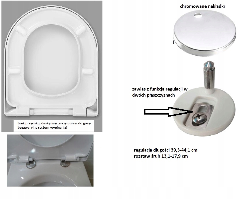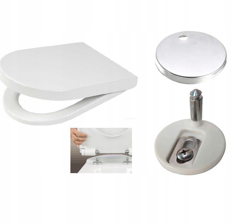 Deska sedesowa wolnoopadająca z regulowanym zawiasem z funkcją wypinania dedykowana do muszli Roca Happening